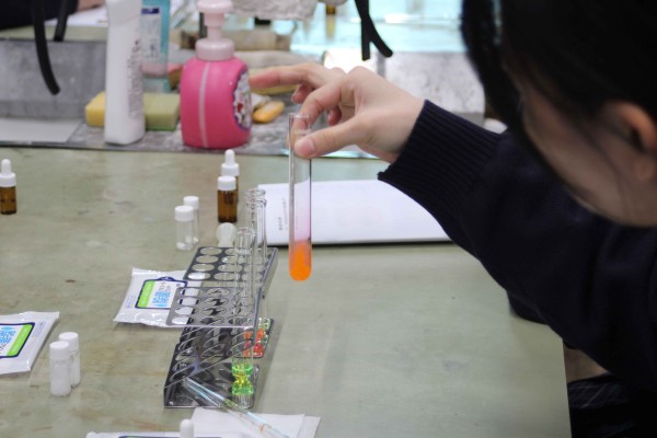 生徒たちは、実際にケミカルライトを使った実験に取り組みながら、色の変化や光の強さに驚きと興味を持ち、化学の面白さを肌で感じていました。