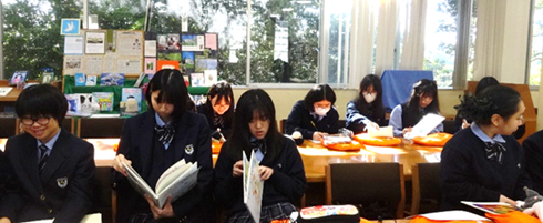 「先生、絵のない絵本ってありますか?小学生の頃読み聞かせボランティアの先生が読んでくれたんです。あっこれこれ懐かしい…。」「なんというかこのくらいの大きさで、紫っぽい表紙で狐が….」「〇〇〇ていう絵本ありませんか?」身振りいっぱいに尋ねる姿に、絵本への密かな愛があふれ出す時間です。「ずーっとだいすきだよ」「さっちゃんのまほうのて」「がまくんとかえるくん」ありますか?「そう、それそれ、ここのページが大好き…。」次々と広がる会話に図書館は熱気を帯びてきました。そして静かに読み合う仲間たち!緑女図書館が秋の日にすてきな絵本館になったような感動を覚えました。