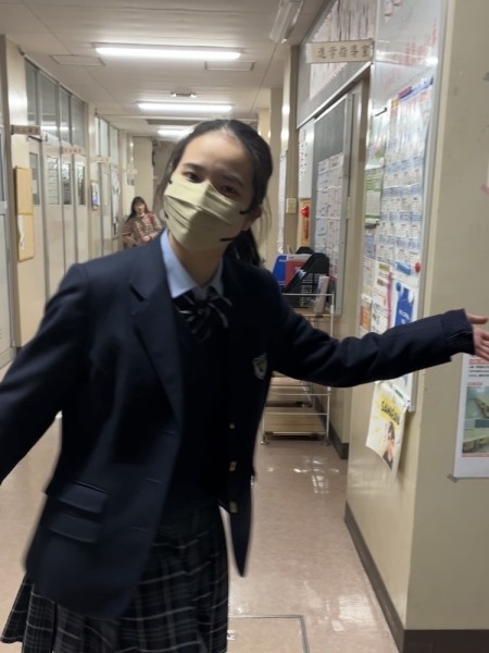 事前に準備した行事説明や校舎・施設の特徴についての原稿をもとに、教員がマンツーマンで付き添い、受験生に見立てた形で行いました。