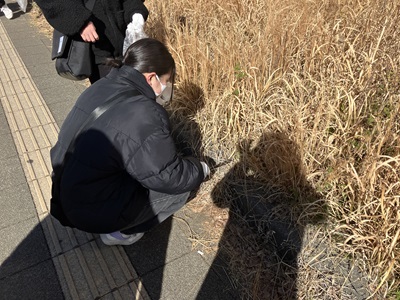 清掃活動では、道沿いや植え込みの中などを中心に、吸い殻やプラスチックごみ、空き缶などを一つひとつ拾い集めました。普段何気なく通っている場所でも、目を向けてみるとさまざまなごみが落ちていることに気づき、生徒たちは互いに声を掛け合いながら丁寧に清掃を進めていました。