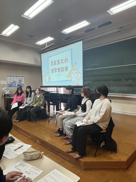 本校では、卒業生と在校生が交流し、進路について学び合う機会を大切にしています。実際の経験を聞くことで、進路がより身近なものとして感じられる貴重な時間となりました。今回の学びを生かし、それぞれが自分の目標に向かって一歩ずつ歩んでいくことを期待しています。