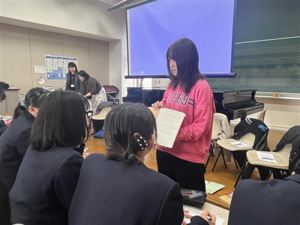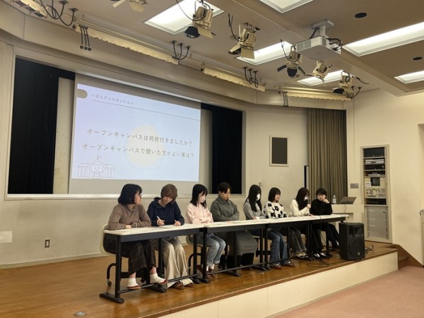 一方、総合進学コースでは、大学・短期大学・専門学校への進学、そして就職など、さまざまな進路を選んだ卒業生が参加しました。進路を決めたきっかけや、進学・就職に向けてどのような準備をしてきたのか、学校生活の中で意識していたことなどを具体的に紹介しました。進路の選択肢が多いコースだからこそ、後輩たちはそれぞれの体験談を真剣に聞き、自分の将来と重ねながらメモを取る姿も見られました。