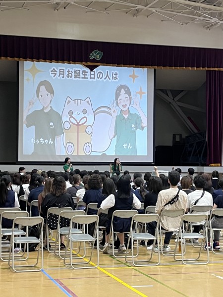 「みどじょん」は今年4月に発足した高校生による広報チームで、学校生活や行事の魅力を同世代の目線で伝える活動を行ってきました。この日も中学生や保護者の方々を前に、授業や行事の様子、部活動の雰囲気などを紹介し、実際の学校生活をイメージしやすい時間となったと思います。また、今回のお誕生日企画も、大いに盛り上がりました。参加者からは「在校生の生の声が聞けて安心した」「先輩の姿が輝いて見えた」といった感想をいただきました。