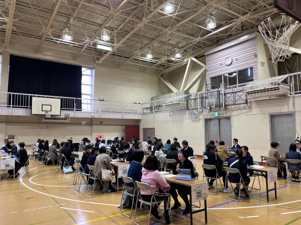 最後は希望者を対象に、体育館にて個別相談を実施。成績や入試、生活面について教員が丁寧にお答えし、安心していただけたようです。また、帰り際には抽選会も行われ、当選した中学生にはハロウィンのお菓子や本校ロゴ入りのグッズをプレゼント!うれしいサプライズに喜ぶ笑顔がたくさん見られました。