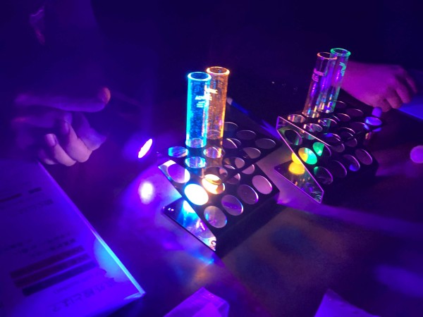 今回の授業テーマは「ケミカルライトを体験しよう」で、化学反応によって発光するケミカルライトを用いた実験を通じて、「色」と「光」の本質について学びました。