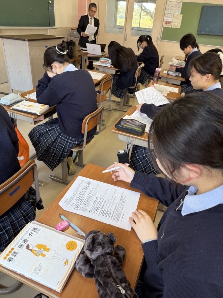 荻原先生の授業は、医療現場の実情や専門職の役割を深く理解する貴重な機会となっており、生徒たちは毎回真剣な表情でメモを取りながら耳を傾けています。