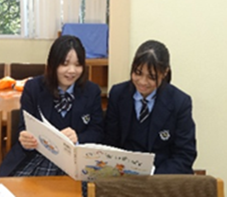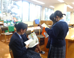 「先生、絵のない絵本ってありますか?小学生の頃読み聞かせボランティアの先生が読んでくれたんです。あっこれこれ懐かしい…。」「なんというかこのくらいの大きさで、紫っぽい表紙で狐が….」「〇〇〇ていう絵本ありませんか?」身振りいっぱいに尋ねる姿に、絵本への密かな愛があふれ出す時間です。「ずーっとだいすきだよ」「さっちゃんのまほうのて」「がまくんとかえるくん」ありますか?「そう、それそれ、ここのページが大好き…。」次々と広がる会話に図書館は熱気を帯びてきました。そして静かに読み合う仲間たち!緑女図書館が秋の日にすてきな絵本館になったような感動を覚えました。