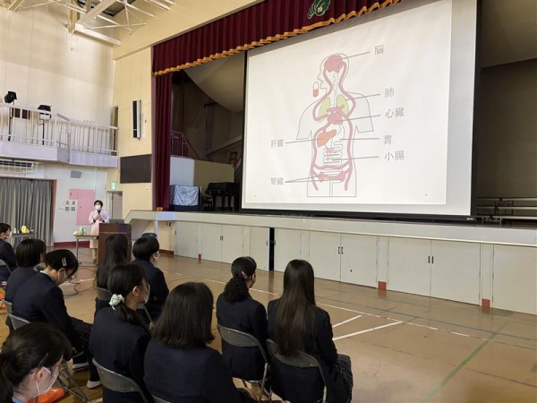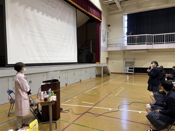 学校薬剤師の先生をお招きし、薬物と医薬品の違いや、薬物乱用が心身や社会生活に及ぼす深刻な影響についてご講演いただきました。